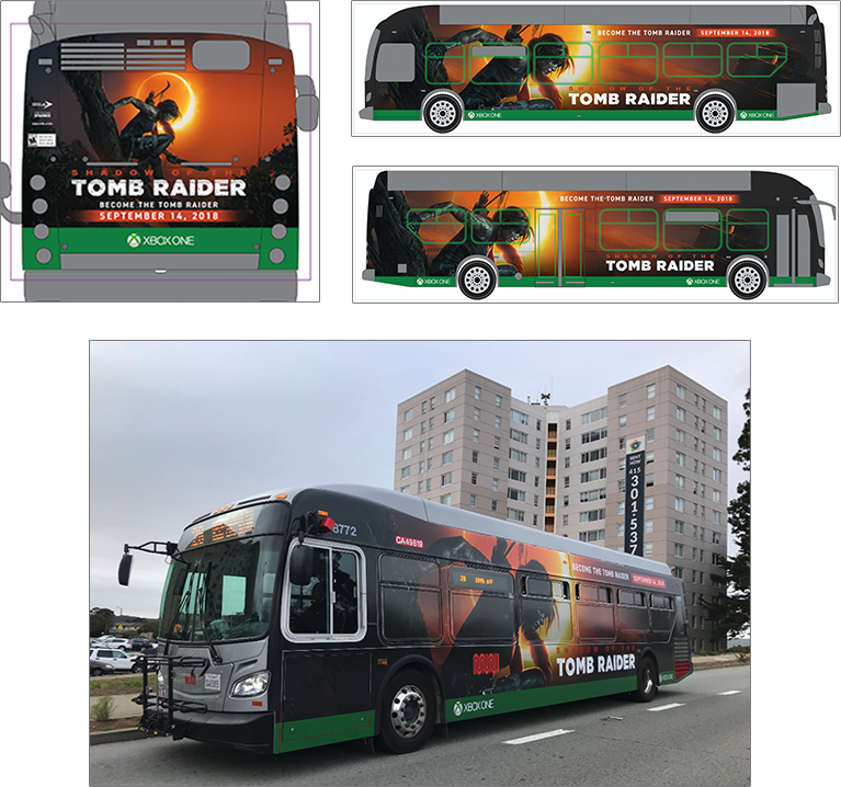 This bus wrap was created by me for the release of the new Square Enix game "Shadow of the Tomb Raider on Xbox.
