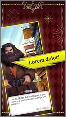 Worked with ACD/SAD to conceive and execute Harry Potter UI designs for Google Play and Apple App store.